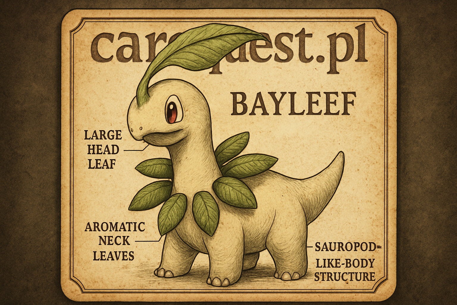 Bayleef to Pokémon typu trawiastego (grass type), wprowadzony w Generacji II, znany jako ewolucja startera z regionu Johto, Chikority. Wielu graczy zastanawia się, czy Bayleef to dobry Pokémon w grach? Ten przypominający sauropoda stwór jest ceniony za swoje zrównoważone statystyki defensywne oraz charakterystyczny wygląd, z dużym liściem (leaf) na głowie i naszyjnikiem z mniejszych, zwiniętych liści. Jego kluczową cechą jest korzenny aroma wydzielany przez leaf, który ma właściwości pobudzające i lecznicze. Poniżej znajduje się szczegółowe omówienie ewolucji, statystyk, ataków oraz roli, jaką Bayleef odegrał w popularnym anime z Ashem.