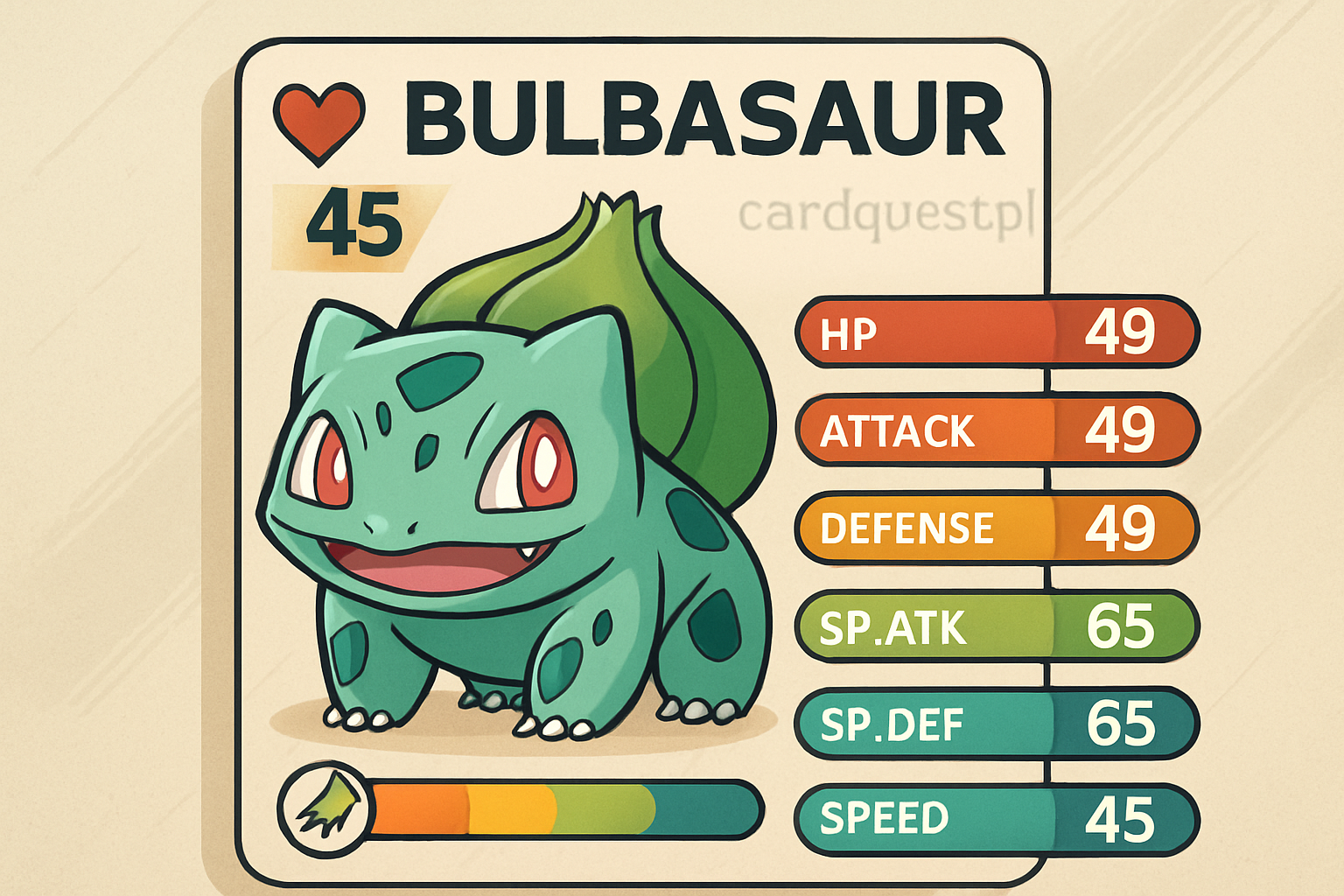 Wielu graczy pyta, jakie są statystyki Bulbasaura oraz jakie są podstawowe statystyki (base stats) Bulbasaura, by ocenić jego potencjał. Bulbasaur jest dobrze zbalansowanym Pokémonem, idealnym jako starter dla początkujących trenerów. Jego podstawowe statystyki są równomiernie rozłożone, z lekką przewagą w ataku specjalnym i obronie specjalnej. Jego bazowe statystyki to: HP: 45, Atak: 49, Obrona: 49, Atak Specjalny: 65, Obrona Specjalna: 65, Szybkość: 45. Dzięki temu ten Pokémon jest w stanie zarówno zadawać solidne obrażenia za pomocą ruchów typu Trawiastego i Trującego, jak i przetrwać ataki przeciwników. Jego główną zdolnością (Ability) jest Overgrow, która zwiększa siłę jego ataków trawiastych o 50%, gdy jego punkty zdrowia spadną poniżej jednej trzeciej. Posiada również ukrytą zdolność (Hidden Ability) – Chlorophyll, która podwaja jego Szybkość podczas słonecznej pogody, co czyni tego Pokémona groźnym przeciwnikiem w zespołach opartych na pogodzie.
