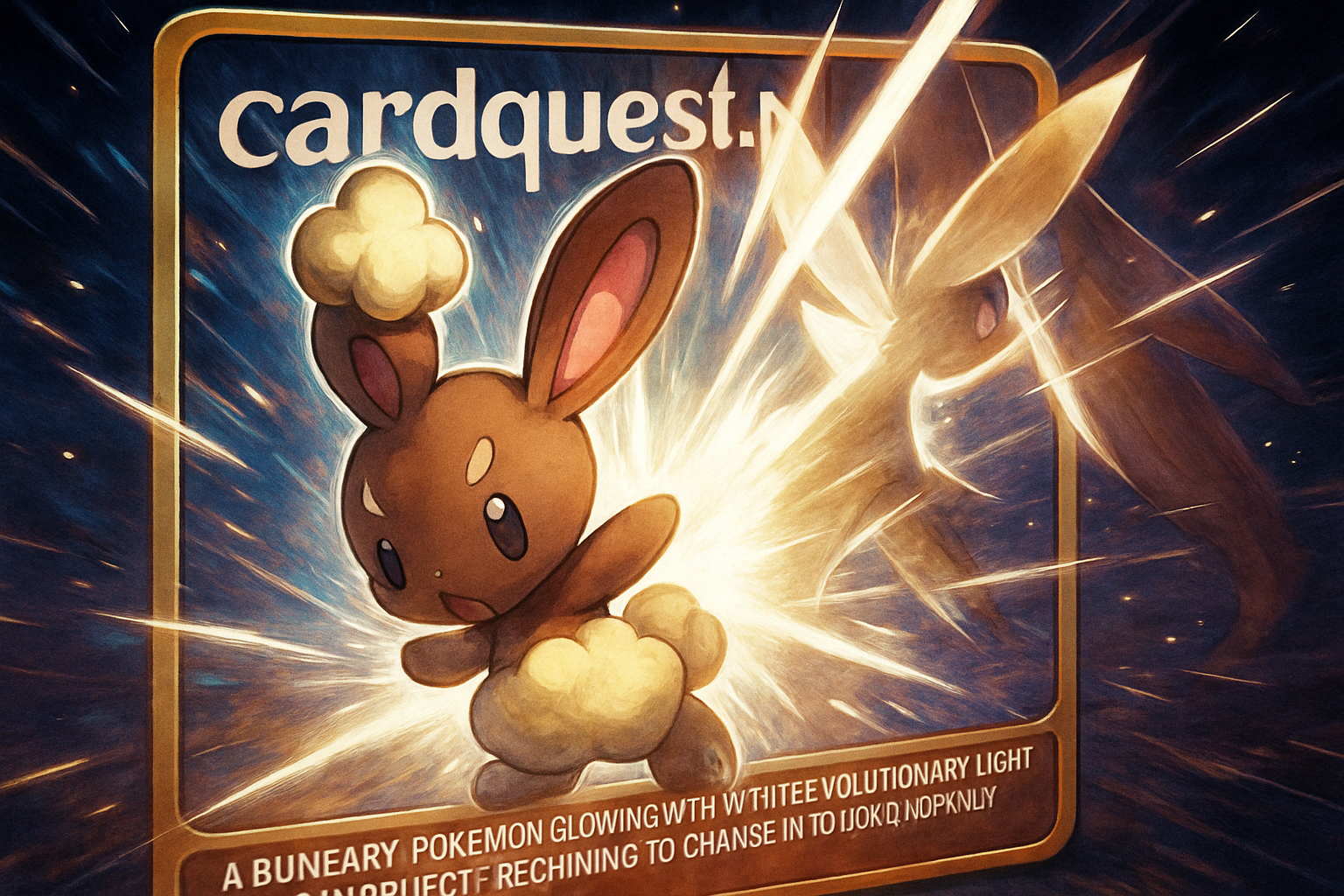 pokemon Buneary świecący białym światłem ewolucyjnym, jego sylwetka zaczyna zmieniać się w Lopunny, dynamiczny, w stylu anime.