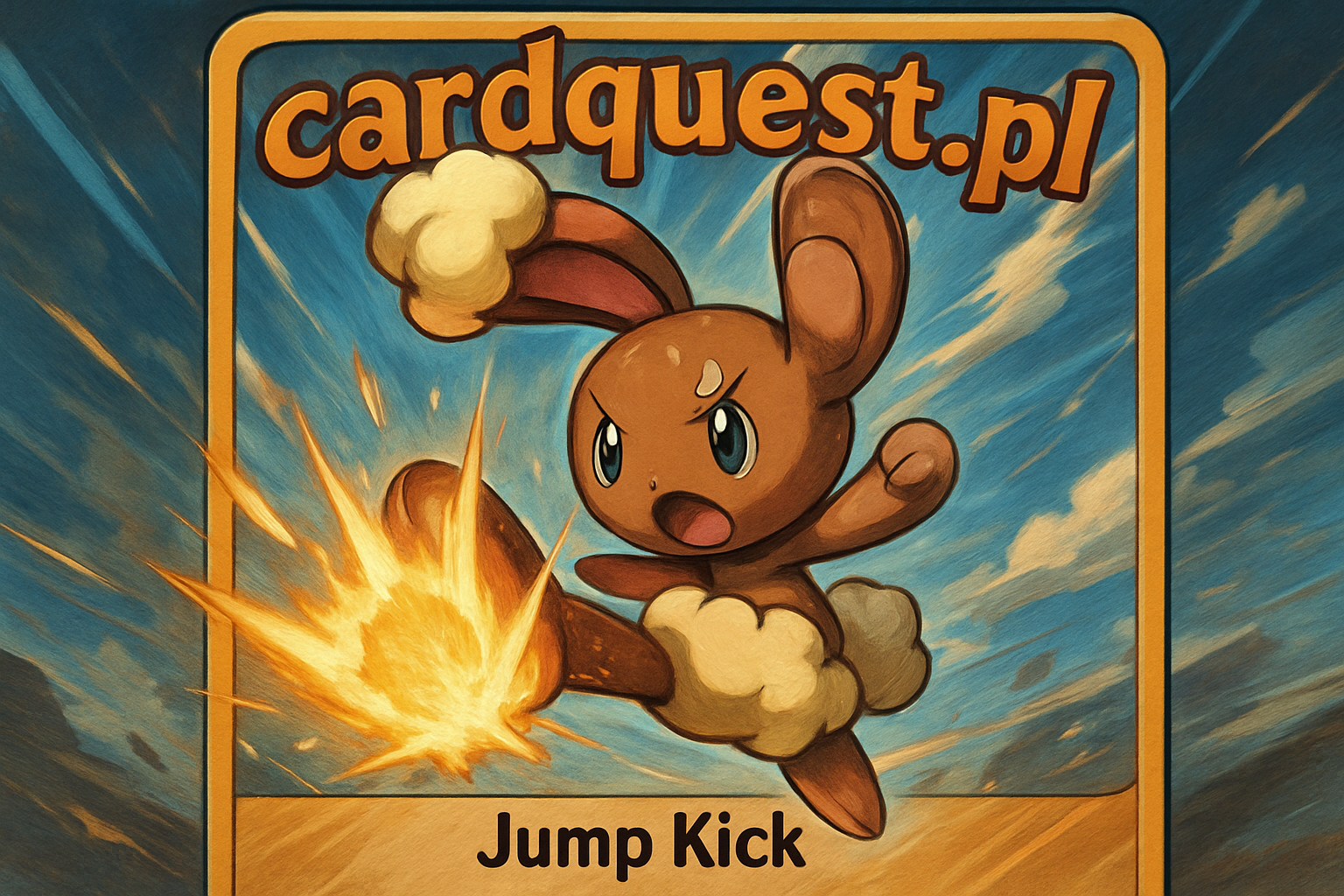 dynamiczne ujęcie akcji pokemona Buneary w powietrzu, wykonującego potężny ruch Jump Kick z świecącą energią wokół stopy, w stylu anime.