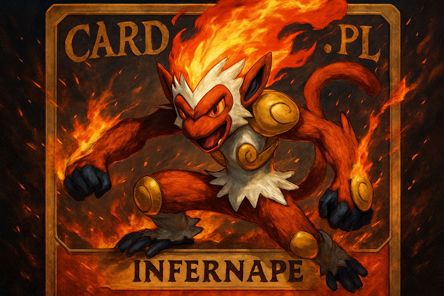 Infernape to dynamiczny Pokémon typu Ogień/Walka, będący ostateczną formą startera Chimchara z regionu Sinnoh (czwarta generacja). Jego design, inspirowany postacią Sun Wukonga z chińskiej mitologii, łączy w sobie cechy małpy i wojownika. Pomarańczowe futro pokrywa większość jego ciała, kontrastując z białymi elementami na torsie i nogach oraz złotymi zdobieniami. Najbardziej charakterystycznym elementem jest płonąca korona na jego głowie, symbolizująca jego ognistą moc, typową dla Pokémonów fire-type. Infernape jest znany ze swojej niesamowitej zwinności i unikalnego stylu walki, co czyni go ulubieńcem wielu graczy i widzów anime.