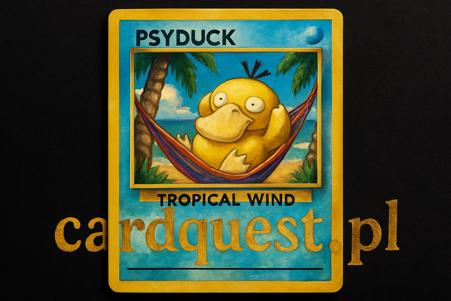 Zanim powstały Mistrzostwa Świata, czołowi gracze z całego świata spotykali się na turnieju Tropical Mega Battle na Hawajach. Karty promocyjne z tych wydarzeń (1999-2001) są dziś niezwykle rzadkie. Karta „Tropical Wind” z 1999 roku jest jedną z najbardziej rozpoznawalnych pamiątek z tych wczesnych, międzynarodowych zawodów. Przedstawia Psyducka relaksującego się w hamaku, co idealnie oddaje klimat Hawajów. Ze względu na ograniczoną liczbę uczestników turnieju, nakład karty jest bardzo niski. Egzemplarze w idealnym stanie regularnie osiągają ceny przekraczające 10 000 dolarów, a najrzadsze wersje potrafią kosztować znacznie więcej, co czyni je cennym nabytkiem dla kolekcjonerów kart historycznych.
