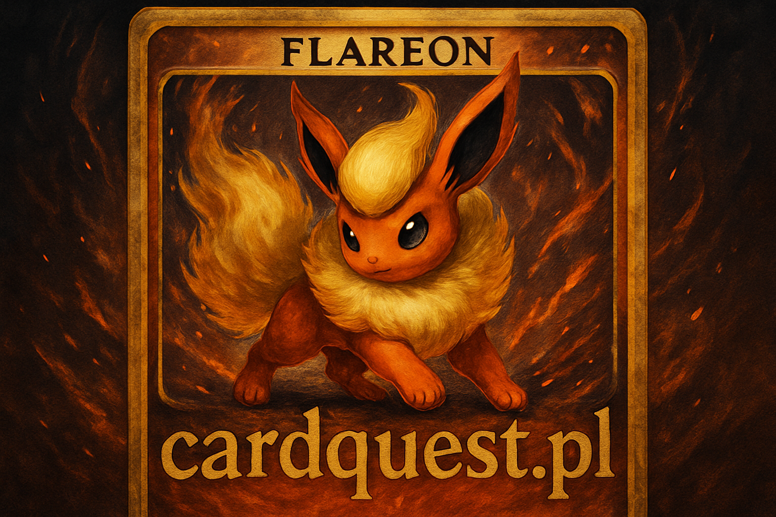 Flareon jest jedną z ośmiu możliwych ewolucji Eevee i reprezentuje typ Ognisty. Jego wygląd to urocze połączenie lisa i puszystego psa, z dominującym pomarańczowo-czerwonym futrem, które doskonale oddaje jego naturę. Puszysty kołnierz wokół szyi i ogon przypominający płomień dodają mu uroku. W grach Pokémon Flareon jest znany z niezwykle wysokiej statystyki ataku fizycznego, co czyni go groźnym przeciwnikiem w bezpośrednich starciach. Potrafi magazynować ciepło w swoim ciele, osiągając temperatury przekraczające 900 stopni Celsjusza. Jego popularność wynika z bycia częścią kultowej rodziny ewolucji Eevee oraz z klasycznego, ognistego designu, który przyciąga fanów od pierwszej generacji. Warto sprawdzić dostępne TM, by nauczyć go ruchów spoza jego naturalnego zestawu.