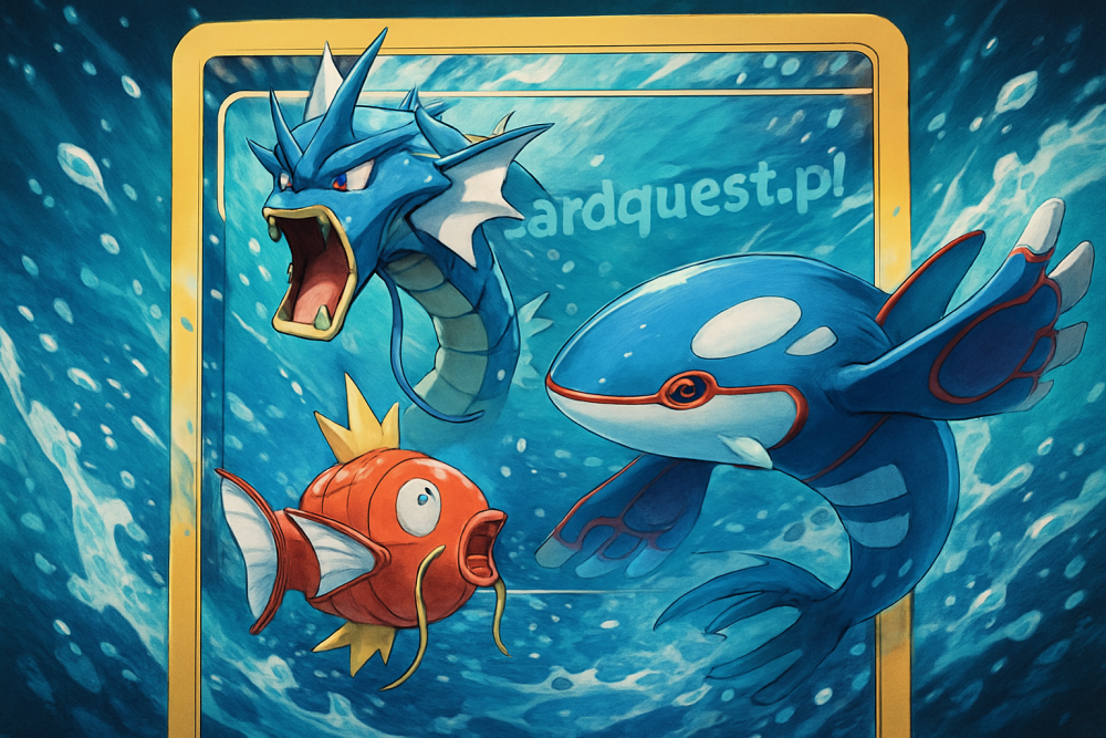 Podium zamyka legendarny Pokémon Kyogre. Ten kolosalny stwór z trzeciej generacji nie jest zwykłą rybą – to pierwotna siła natury, która według mitologii ukształtowała morza. Jego wygląd budzi respekt. W walce Kyogre jest absolutną potęgą, a jego zdolność Drizzle (Mżawka) wzmacnia jego ataki. Kluczowa rola w fabule gry czyni go jednym z najpotężniejszych morskich stworzeń, co znajduje odzwierciedlenie w jego potężnych kartach kolekcjonerskich, często będących centralnym elementem niejednego zestawu.